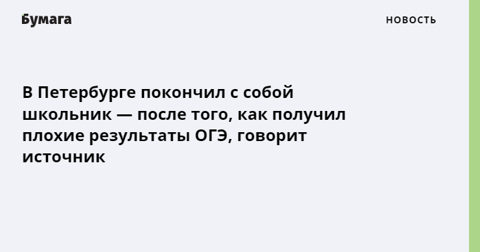 В Петербурге покончил с собой школьник — после того, как получил плохие результаты ОГЭ, говорит источник