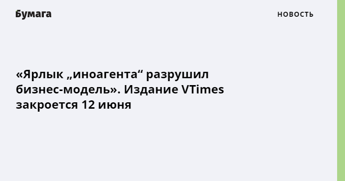 VTimes объявило о закрытии из-за признания иноагентом