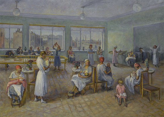 © Государственный музейно-выставочный центр «РОСИЗО» Ольга Синицына. Комната кормящей матери. 1937 — Для меня РОСИЗО — государственная коллекция, состоящая из заказных политических вещей, которые закупались системно. Я бы сказала, что задачей этого собрания, некоторое время называвшегося «РОСИЗОпропаганда», как раз и было сформировать определенную картину истории советского искусства — такую, какой она была в коллективных монографиях 1940-х — 1970-х годов.