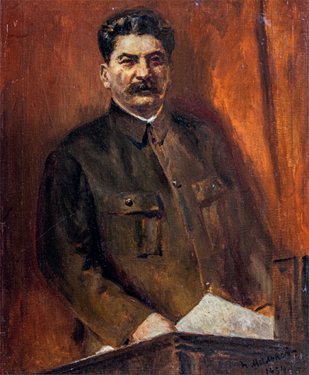 © Государственный центральный музей современной истории России Павел Мальков. Портрет И.В. Сталина. 1934 — Во вступительной статье к каталогу вы говорите, что выставка — точно не реконструкция, хотя в нее вошли многие работы из «Индустрии социализма». И все-таки, как мне кажется, во многом получилась именно реконструкция крупной отчетной выставки официального искусства, просто реконструкция не физическая, а эмоциональная. Вы упоминаете маленький портрет Сталина, маленькую картину Редько, вещи Лабаса и Голополосова. Но все эти необычные работы выглядят единичными крупицами в огромном потоке идеологической тяжести уже ушедшей эпохи, который захватывает и несет зрителя, и он, как в 1975 году, начинает интуитивно искать и находить эти крупицы смысла. Что дает сегодня такой эффект?