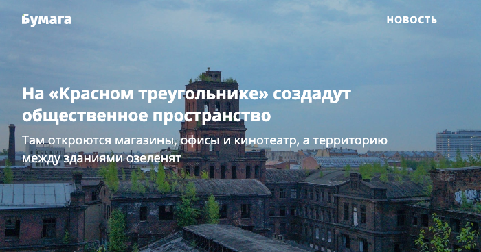 На территории бывшего завода «Красный треугольник» создадут общественное пространство. Об этом сообщает «Петербургский дневник».