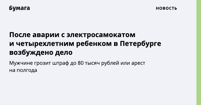После аварии с электросамокатом и четырехлетним ребенком в Петербурге возбуждено дело