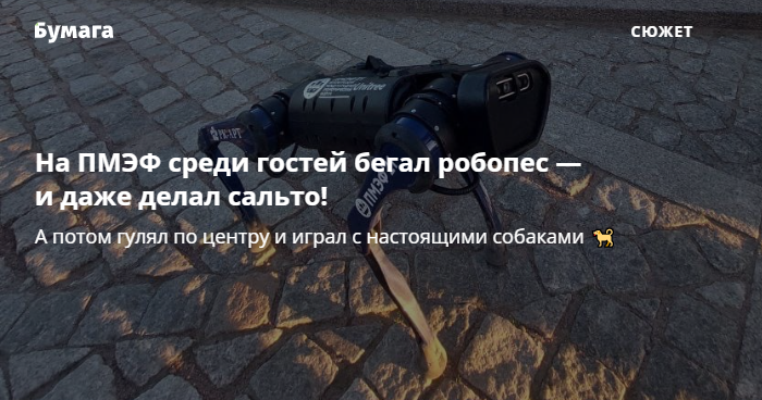 На Петербургский международный экономический форум привезли собаку-робота от компании Unitree — он встречал гостей и показывал трюки, заинтересовав в том числе Ксению Собчак. Позднее пес прогулялся по центру города и поиграл с настоящими собаками. «Бумага» рассказывает, как горожане фотографировались с роботом и шутили про «Черное зеркало».