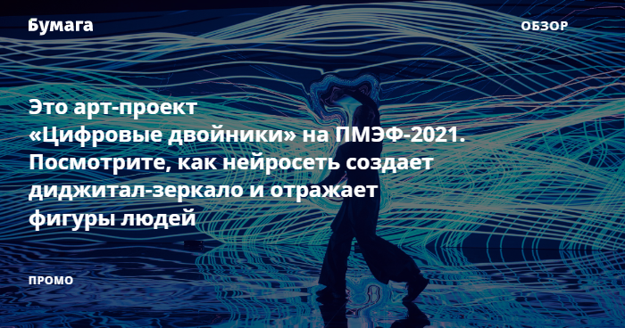 На ПМЭФ выставили арт-объект «Цифровые двойники» — совместный проект медиахудожника Максима Жесткова и «Газпром нефти». На большом экране нейросеть создает «отражения» людей, повторяя их движения с красочными эффектами.