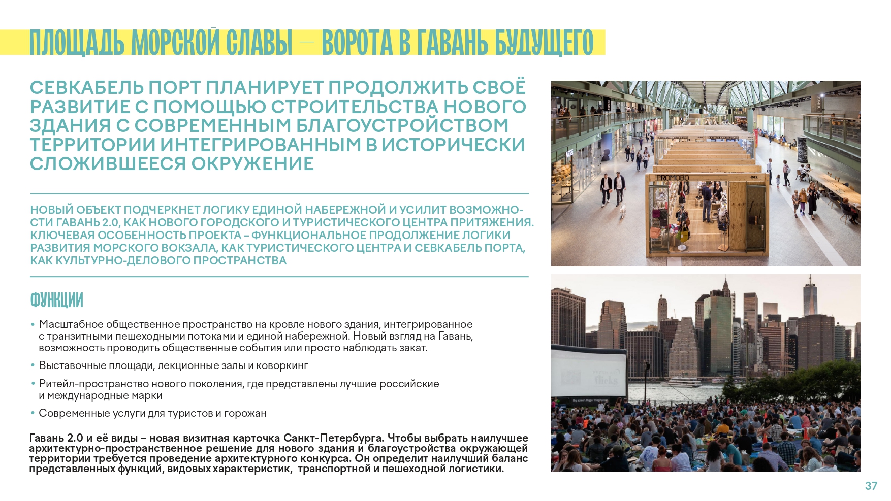 Авторы идеи также планируют провести реновацию на территории бывших промышленных набережных от площади Морской Славы до Балтийского завода. Там создадут единую пешеходную и рекреационную зону вдоль линии воды протяженностью 1,25 километра. Инвесторы вложат 7 миллиардов рублей в возведение 10 тысяч кв. метров новых площадей — там разместят деловые, культурные, событийные, гостиничные и образовательные проекты.