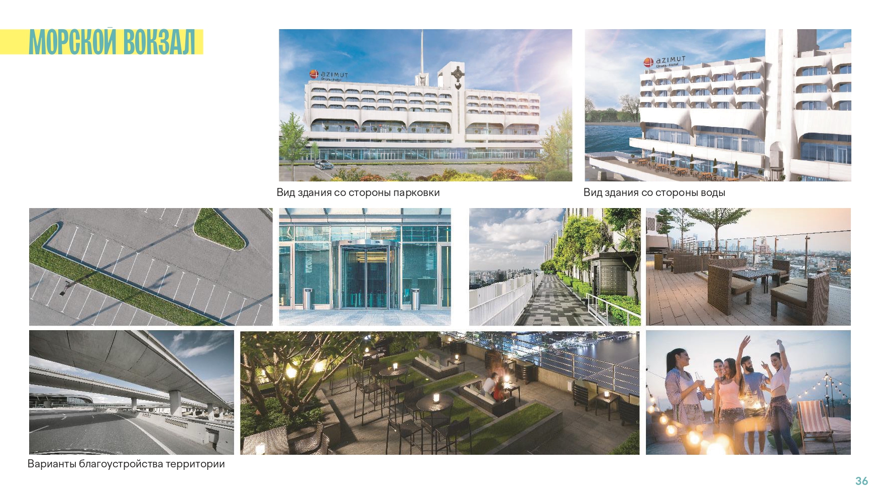 В здании Морвокзала разместят четырехзвездочный отель Azimut на 339 номеров с двумя барами, рестораном с террасой, конференц-залом, а также медиацентр. Здание будет функционировать в том числе как бизнес- и торговый центр.
