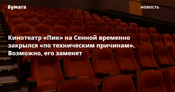С 1 июня кинотеатр «Пик» в одноименном торгово-развлекательном комплексе на Сенной площади не работает «по техническим причинам». Внимание на это обратила «Бумага».