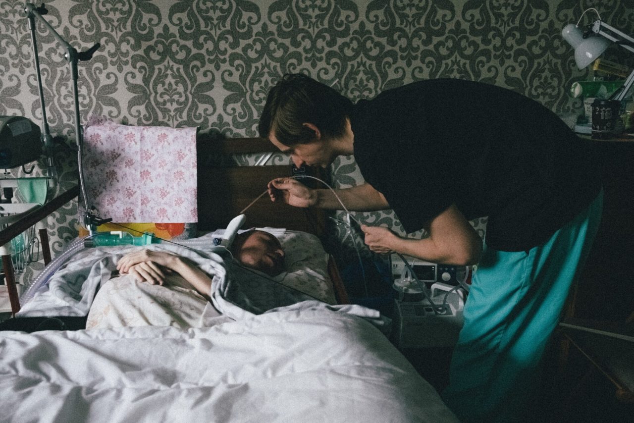 Кто может быть ассистентом? Любой человек — пол и возраст не важен. Специальное образование тоже не нужно, первые две недели всему учат: и базовому уходу, и использованию оборудования (мешок Амбу, откашливатель, НИВЛ и так далее), а первые несколько визитов проходят в сопровождении более опытных ассистентов. Главное — желание этим заниматься. «На собеседования нянь и ассистентов приходит очень много людей, и много отсеивается, причем именно по причине мотивации, — говорит Олег. — Часто люди приходят в хоспис из-за своих собственных травм. И изначально у нас была позиция, что брать человека с травмой в хоспис — плохая идея. Но потом мы от этого отошли и рассматриваем каждого индивидуально. Я и сам, получается, со своей травмой пришел».