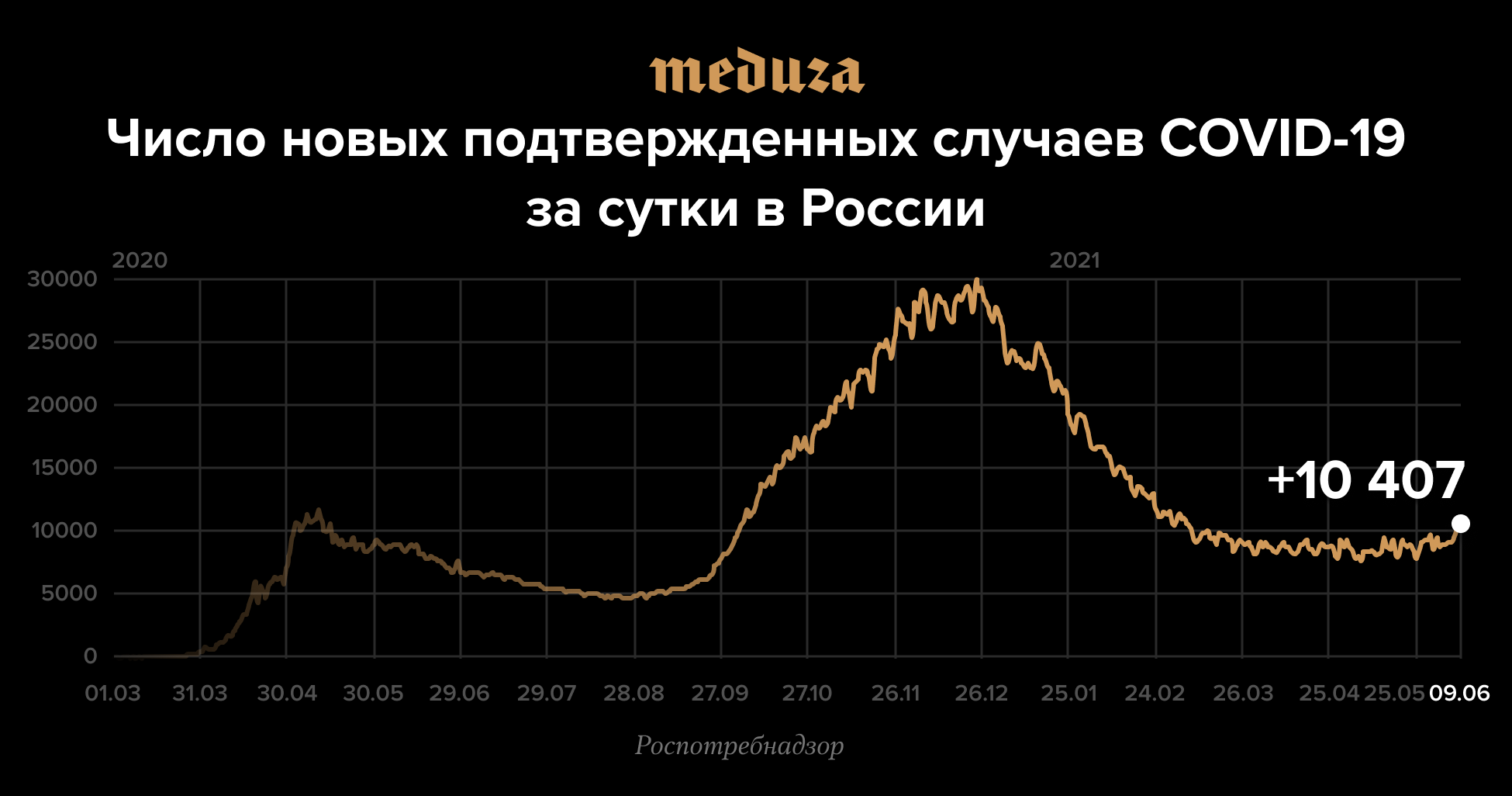 По состоянию на 11:20 9 июня, в России за последние сутки выявили 10 407 новых случаев заражения коронавирусом, сообщил федеральный оперативный штаб по борьбе с распространением COVID-19.
