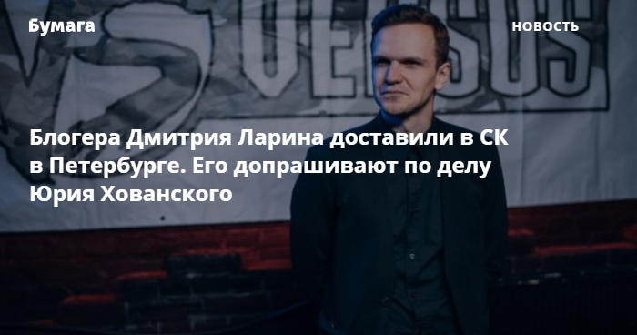 Блогера Дмитрия Ларина доставили в управление Следственного комитета в Петербурге в связи с делом Юрия Хованского. Об этом «Бумаге» сообщил источник, знакомый с Лариным, сам блогер также подтвердил информацию в своем телеграм-канале.