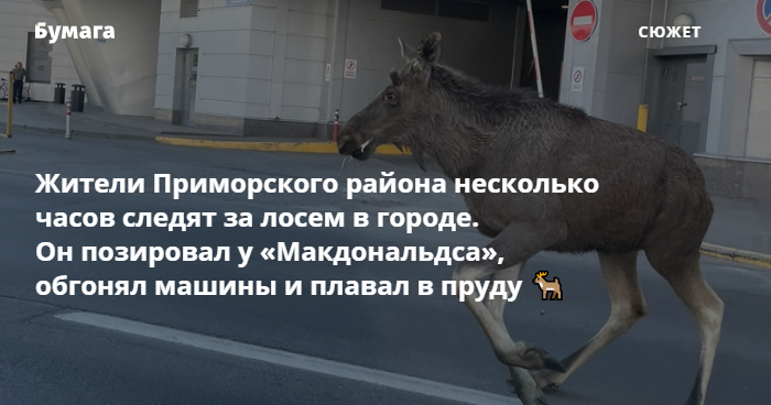 «Бумага» рассказывает о передвижениях лося в Приморском районе.