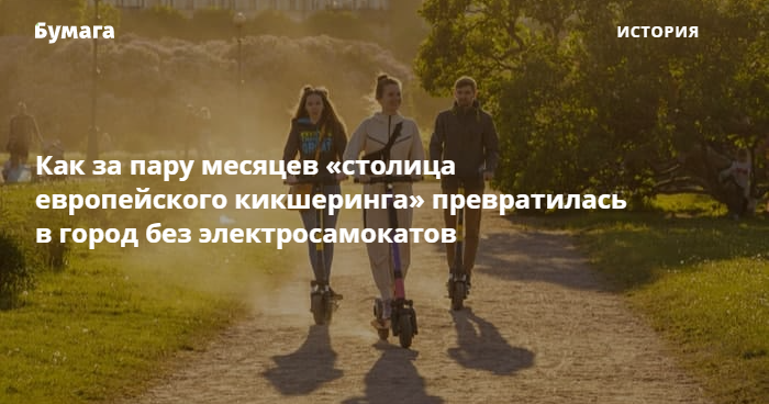 Но главный вопрос теперь — когда кикшеринг вообще вернется в Петербург после своего внезапного исчезновения. Ответ на него не могут дать ни в Смольном, ни в компаниях. Источник «Бумаги» в кикшеринговой компании говорит, что СК попросил приостановить работу на неопределенный срок.