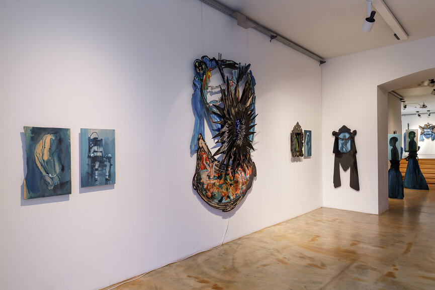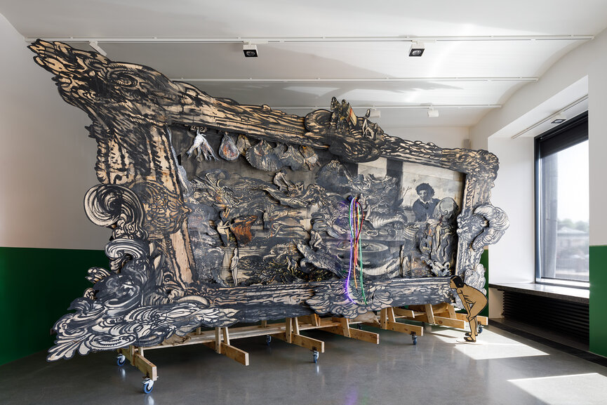 Александр Шишкин-Хокусай — известный петербургский художник и сценограф, неоднократный лауреат «Золотой маски», один из создателей Фанерного театра в БДТ и участник российского павильона на Венецианской биеннале в 2019 году. Первый зал в Marina Gisich Gallery посвятили именно этому проекту: там выставили фанерные инсталляции из серии «Фламандская школа», созданные художником на основе картин фламандских мастеров из коллекции Эрмитажа.