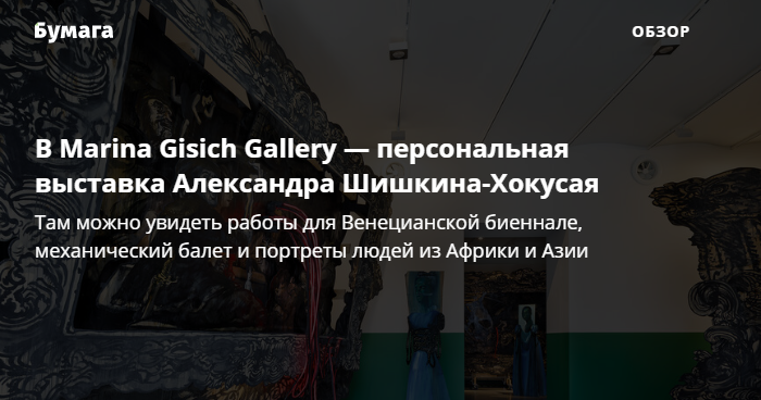 В начале июня в двух выставочных пространствах Marina Gisich Gallery на набережной Фонтанки начала работу масштабная персональная выставка Александра Шишкина-Хокусая. В одном зале выставили работы для венецианского смотра, во втором — новый проект художника «Набережная рабов».