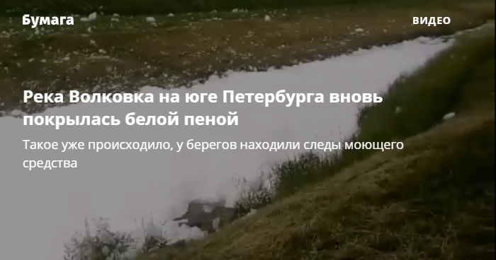 Ранее белую пену на Волковке замечали 21 апреля. Тогда в комитете по природопользованию говорили, что на дороге у берегов реки нашли следы моющего средства. При этом, по словам чиновников, пена могла появиться и в связи с «перепадом высот» на водосбросном сооружении.