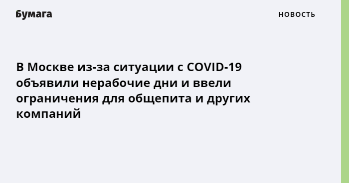 В Москве из-за ситуации с COVID-19 объявили нерабочие дни