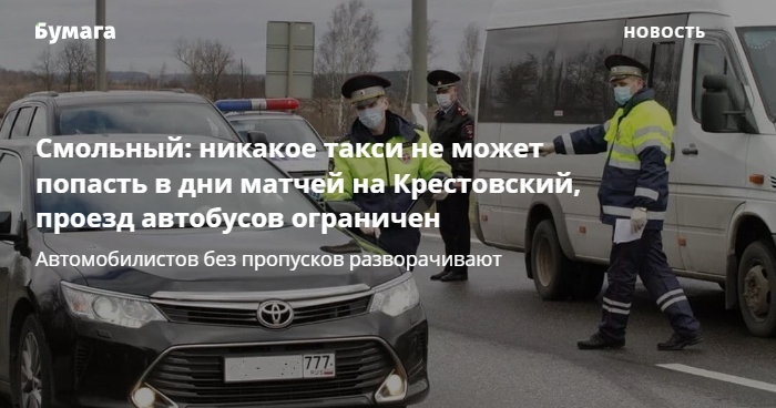 Кроме того, для проезда на Крестовский остров жителям необходимо получить пропуск. Как выяснила «Бумага», у автомобилистов действительного проверяют пропуска. Читайте, что известно о других ограничениях на Крестовском острове во время чемпионата.