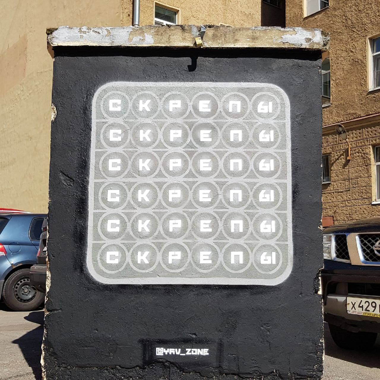 6 июня арт-группа «Явь» нарисовала на трансформаторной будке на Лиговском поп-ит с надписью «Стресс». 10 июня, после того как рисунок закрасили, художники представили обновленную работу в черно-белом формате с надписью «Скрепы».