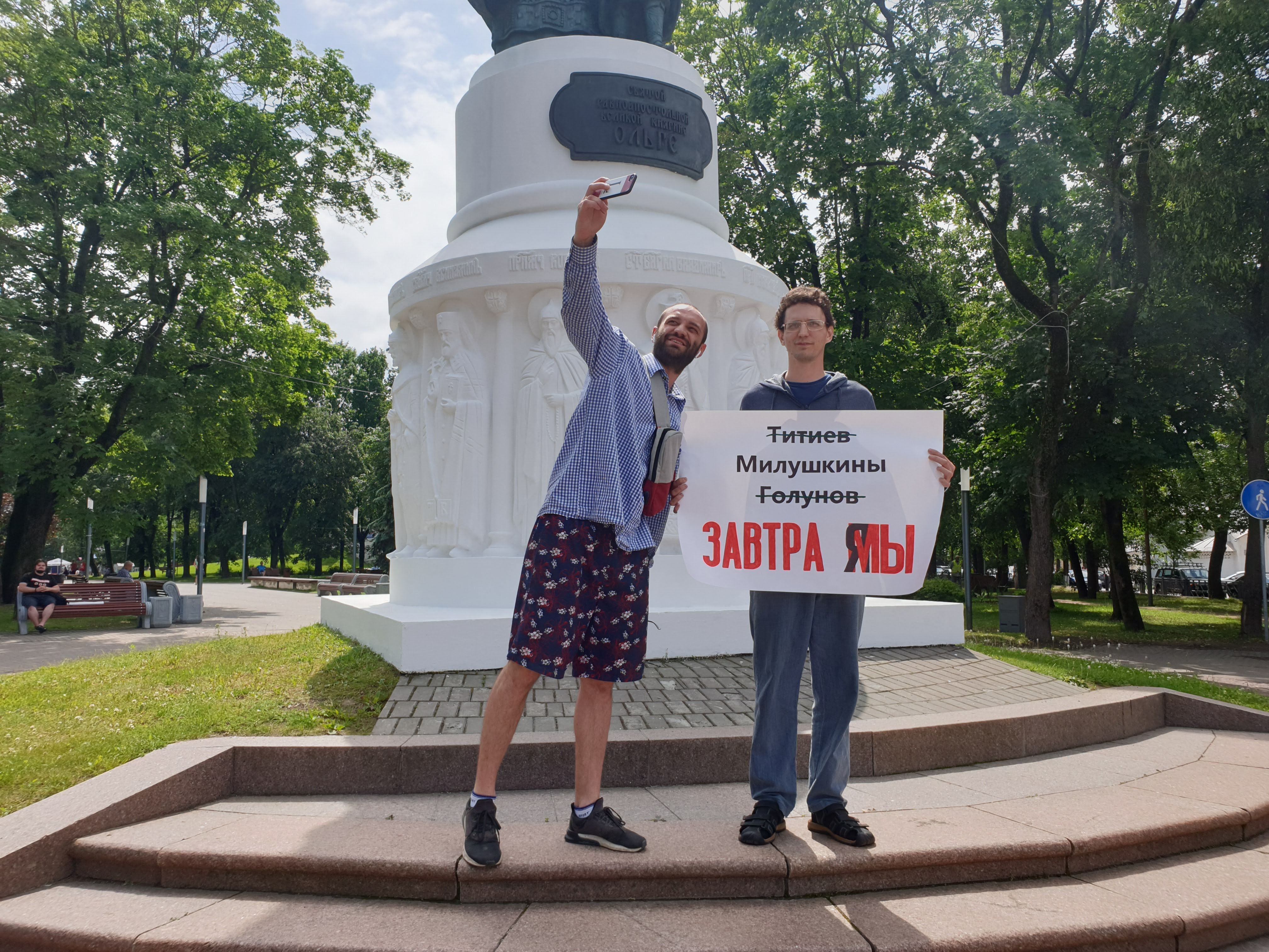 12 июня 2019 года псковичи вышли в первые пикеты в поддержку арестованных активистов "Открытой России" и обвиненного в попытке сбыта наркотиков журналиста «Медузы» Ивана Голунова. Они стояли с плакатами "Титиев , Милушкины, Голунов – завтра Я/Мы". На тот момент муж экс-координатора "Открытой России" Артем Милушкин уже полгода был в СИЗО, а обвинение строилось на показаниях засекреченного свидетеля. Акция стала ежедневной: псковичи выходили в людные места Пскова с призывами освободить Милушкиных и обеспечить их справедливое судебное разбирательство. Полиция приезжала на каждый пикет, снимала протестующих и переписывала их данные.
