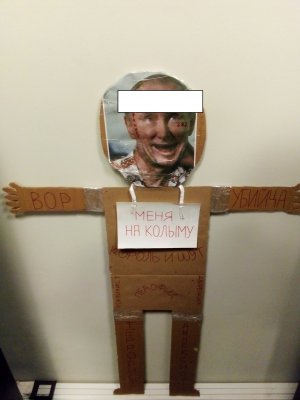 28 апреля суд рассмотрел еще один протокол в связи с пикетом 13 февраля, в этот раз по статье о публичной демонстрации нацистской символики (ч. 1 ст. 20.3 КоАП). По версии суда, Андрей Ус вышел на акцию с ростовой куклой в виде Владимира Путина, на которую нанес «символику, схожую с нацистской». Активисту назначили 15 суток ареста. Ус отрицал вину по вменяемому правонарушению.