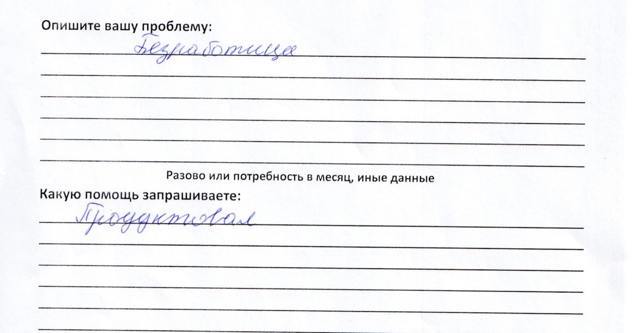 В анкетах, которые люди заполняют, когда просят у центра помощи, они не описывают свои жизненные ситуации подробно.