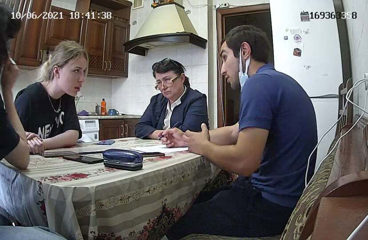 After negotiating with the policeman, Svetlana Anokhina and lawyer Patimat Nuradinova let the officer, a man named Dalgat, into the apartment so Taramova could personally assure him that she left home voluntarily.