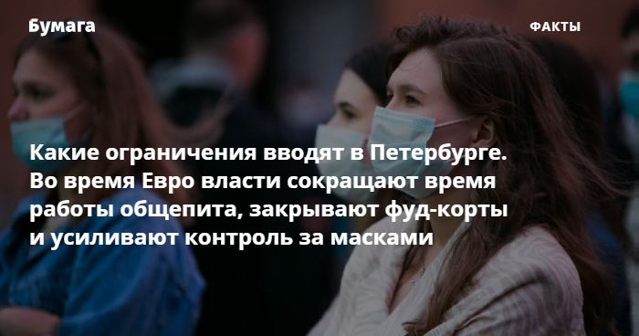 В Петербурге в ночь на 14 июня анонсировали новые ограничения из-за роста заболеваемости коронавирусом. Они вступают в силу с 17 июня. Общепиту запретят работать после 2 часов ночи, в торговых центрах закроют фуд-корты, в фан-зонах перестанут продавать еду, на мероприятия будут пускать не более 3 тысяч человек.