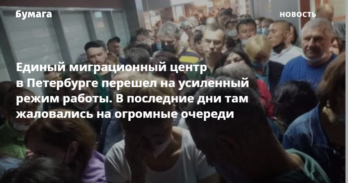 В последние дни в соцсетях жаловались на огромные очереди в ЕМЦ. 15 июня истекал мораторий на выдворение иностранцев, введенный на время пандемии, сотни людей приходили продлевать документы. В Смольном объясняли, что в ЕМЦ не хватает сотрудников для быстрой обработки всех заявок.