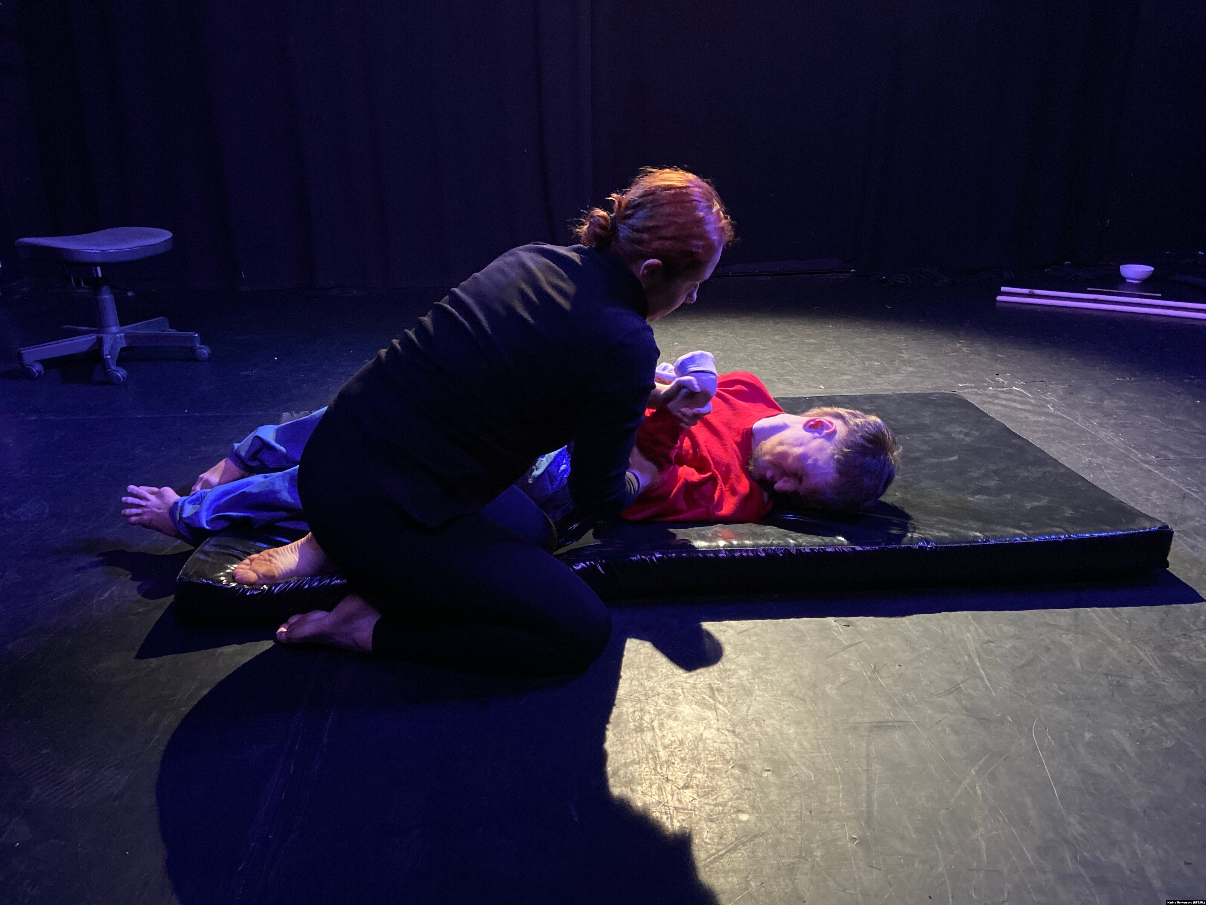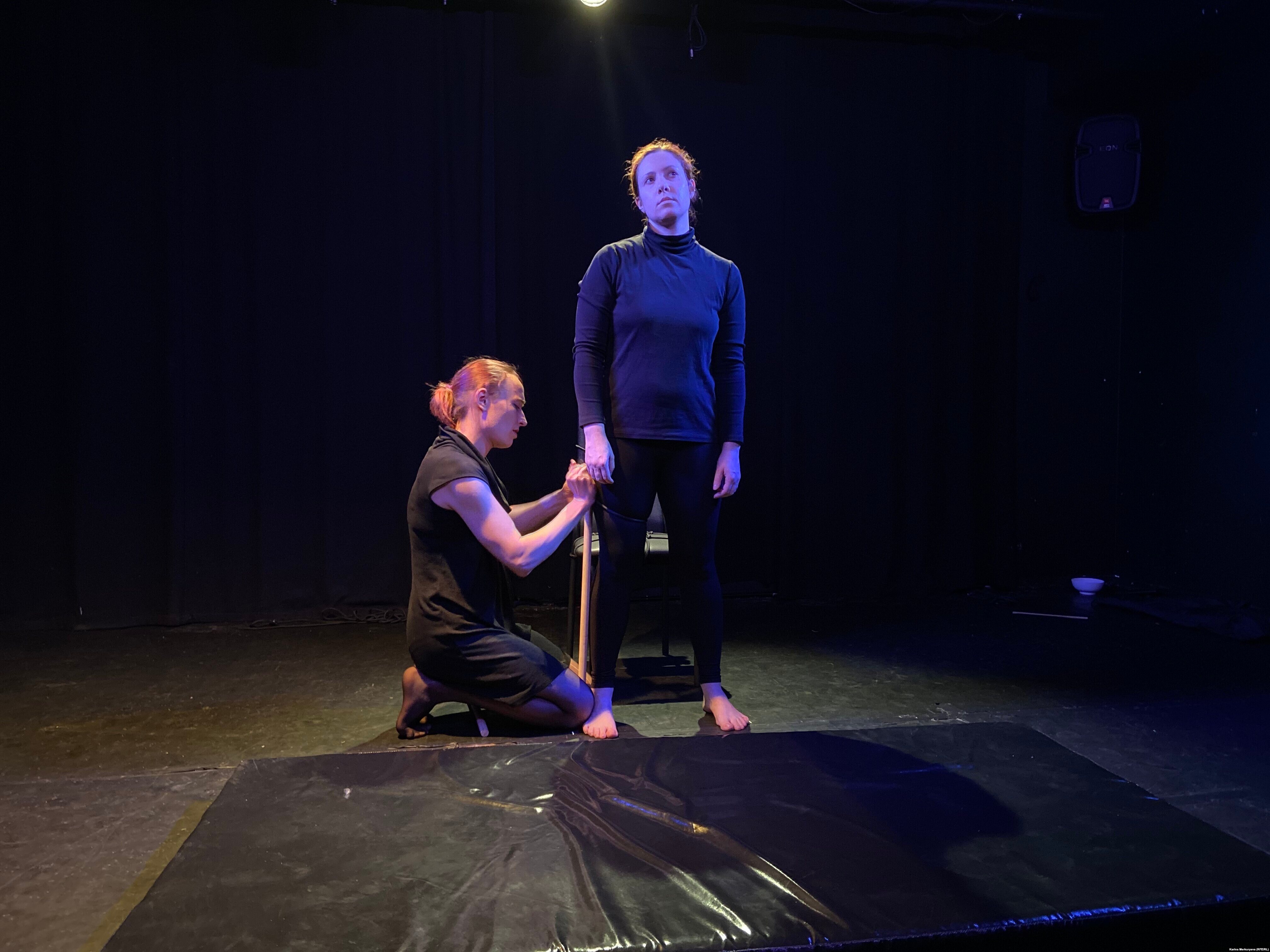 Через какое-то время он сам начнет отдавать Вере такие же приказания: попросит привязать к ее ногам палки, будет корректировать осанку или заставит сделать эпиляцию. Все практики на сцене как ему, так и Вере помогает выполнять их знакомая Эрмина Кримсон (она же сделала саунд-дизайн и музыку в перфомансе). По словам Антона, смена ролей – очень важный момент в перформансе. Получается, что насилие может производить и тот, кто его сам претерпевал, отмечает он.
