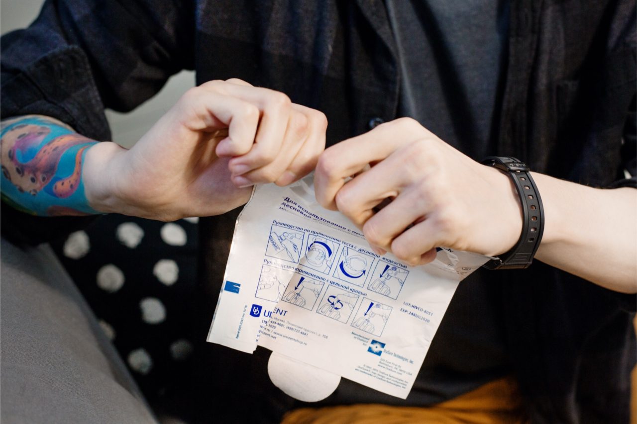 Гриша поставил телефон на громкую связь, открыл пакет с тест-системой, провел тестером по деснам, поставил тестер в пробирку со специальной жидкостью на 15 минут. Все это время консультант вел беседу, узнавал о рисках клиента, рассказывал о тех аспектах ВИЧ, которые были важны именно Грише.