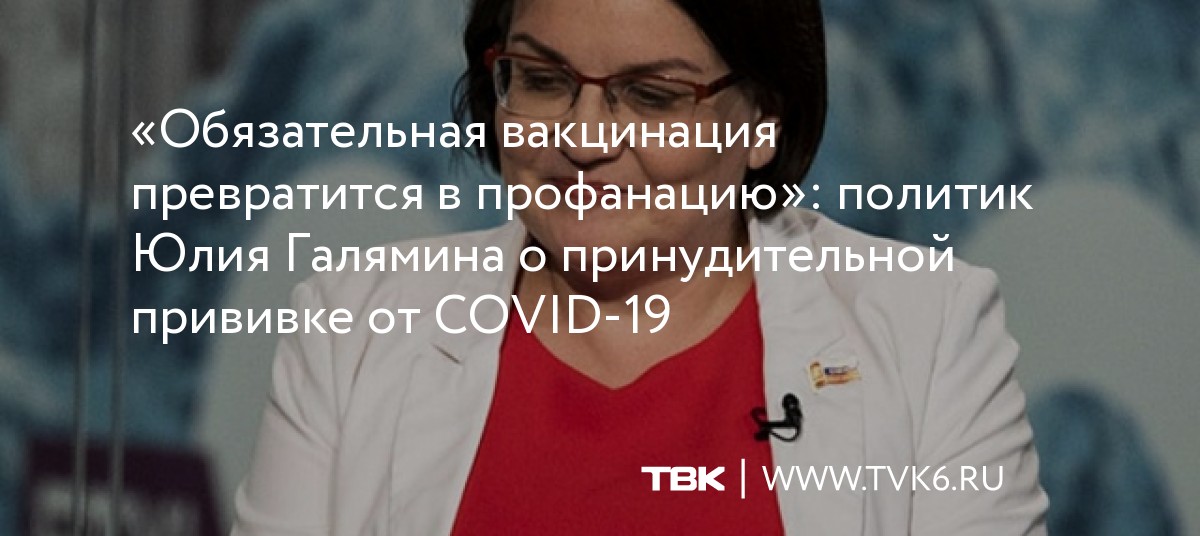 «Обязательная вакцинация превратится в профанацию»: политик Юлия Галямина о принудительной прививке от COVID-19