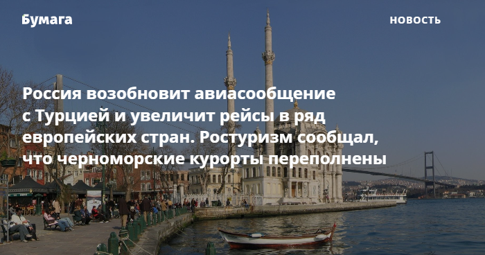 Россия возобновит авиасообщение с Турцией и увеличит рейсы в ряд европейских стран. Ростуризм сообщал, что черноморские курорты переполнены