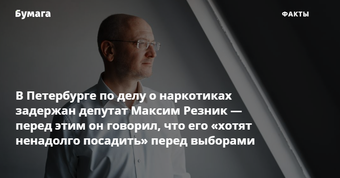 Максим Резник ранее также говорил «Бумаге», что «всё это политическая история», имея в виду уголовное дело о наркотиках. На открытии своего штаба 5 июня он заявлял, что его «хотят ненадолго посадить», но он этого не боится.