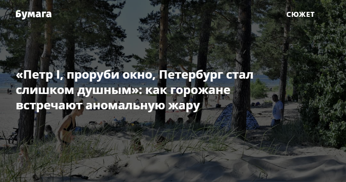В воскресенье в Петербурге ожидается до +31 градуса, а в Ленобласти на следующей неделе будет до +36. Не все довольны такой погодой: в соцсетях — десятки жалоб на духоту. Некоторые пишут, что переехали в Петербург именно из-за дождей и прохладной погоды, а солнце им не нравится. Другие просят Петра I прорубить новое окно в Европу, чтобы на улице стало более свежо.