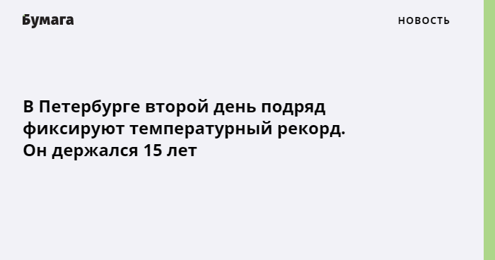 В Петербурге зафиксировали температурный рекорд — второй раз подряд. Об этом сообщает синоптик центра «Фобос» Михаил Леус.