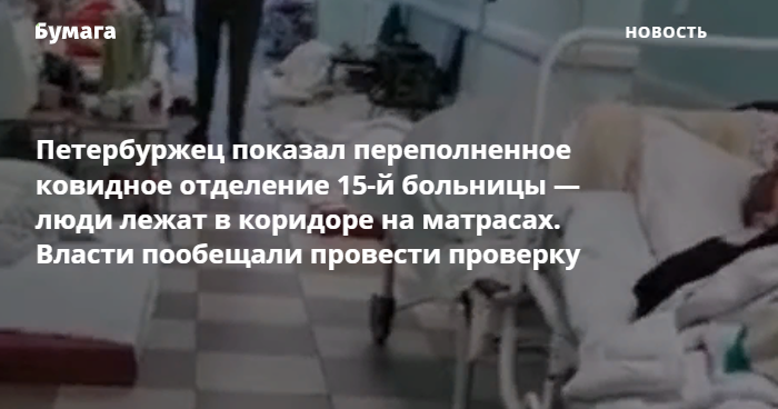 Очевидец рассказал о переполненном ковидном отделении больницы № 15 в Петербурге и о лежащих в коридоре людях. Комитет по здравоохранению проведет проверку.