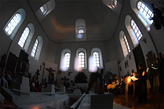 Самые показательные в смысле ритуальности, мистериальности и энигматичности проекты Курентзиса и его супермузыкантов, частично уже опробованные в Петербурге и Москве (названия такие: «Lux aeterna», «Церемония памяти Пауля Целана», «Мистерия»), тоже проходили здесь, в цеху под названием «Литера А», максимально укрытом от внешнего света пермских белых ночей. Маэстро любит темноту, это всем известно. Свод правил уже давно канонизирован и вызывает вопросы только у новичков, а их немного. Бумажку с точной программой вам, скорее всего, выдадут не на входе, а на выходе из зала: это называется «концерт-энигма». Вовремя не начнут. Закончат глубоко за полночь. Поклонов не будет. Телефоны — вне закона. Шуметь — грех. В некотором количестве имеется буржуазный атавизм в виде стульев, но идеологически правильнее сидеть на подушках на полу. Самые верные послушники берут на время фестиваля отпуск, чтобы отсыпаться после ночных концертов (некоторые, те, что в Художественной галерее, среди деревянных пермских богов, начинаются перед рассветом — в 3:30), и кредит, чтобы купить билеты на все его события. Билеты недешевы, хотя все равно быстро разлетаются.