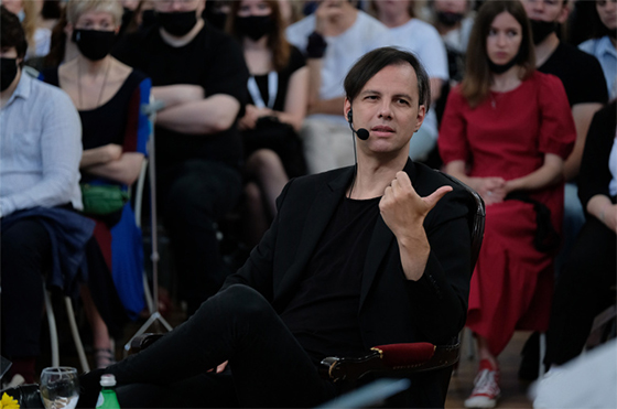 © Гюнай Мусаева Мастер-класс Теодора Курентзиса Как обычно, композиторов на фестивале было много. Более того, сам худрук тоже выступил в этой роли, очень обаятельно поучаствовав в сочинении музыки на тексты Пауля Целана вместе с Владимиром Ранневым, Андреасом Мустукисом, Алексеем Ретинским, Сергеем Невским, Борисом Филановским, Экторасом Тартанисом и своим братом Вангелино Курентзисом. Говорят, на каком-то из фестивальных ивентов он и стихи свои читал. Этого я не видела. Зато видела, как в рамках Образовательной программы он проводил мастер-класс, на котором учил дирижеров работать с певцами, доставать из них правильные звук, ритм, эмоцию, произношение, аромат парижских кофеен и бог знает что еще. Иногда на работу с одной фразой уходил час. Публика, набившаяся в зал Дягилевской гимназии, завороженно следила за этим фантастическим представлением, которое лучше чего бы то ни было объясняло, чем, собственно, так ценен Дягилевский фестиваль Курентзиса.