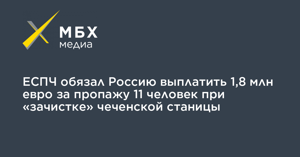 ЕСПЧ обязал Россию выплатить 1,8 млн евро за пропажу 11 человек при «зачистке» чеченской станицы