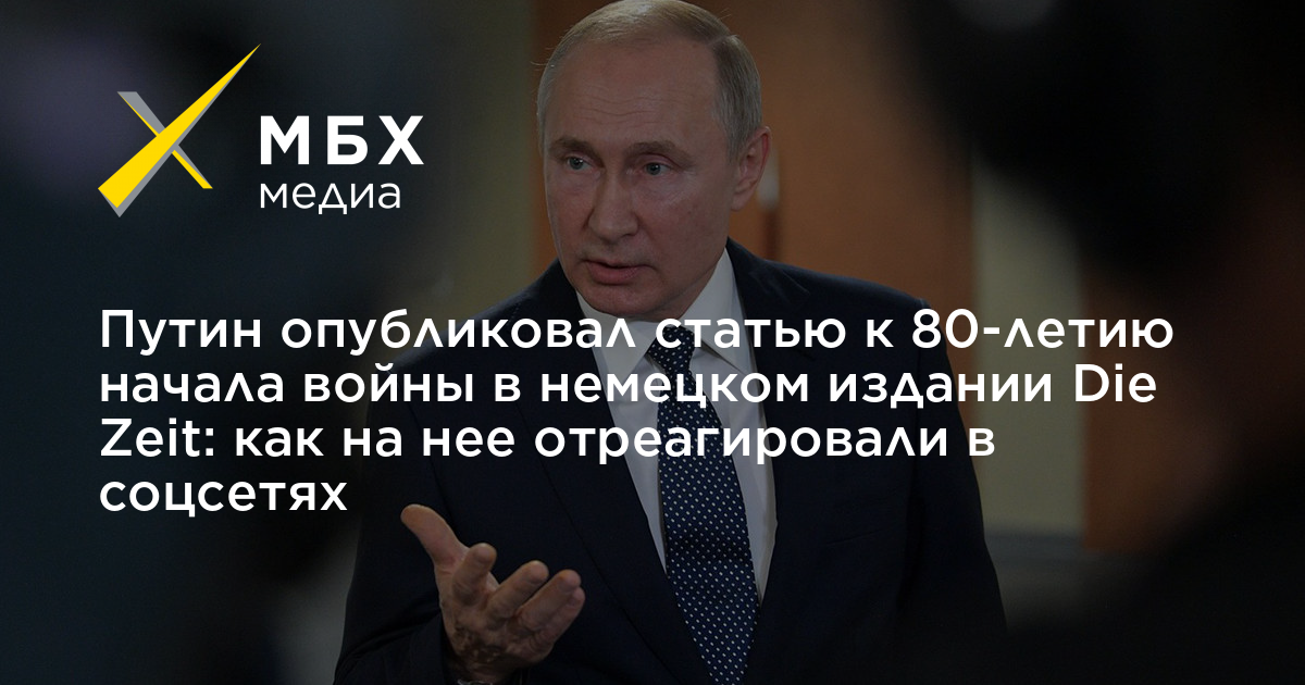 Президент России Владимир Путин написал статью «Быть открытыми, несмотря на прошлое». Она размещена на сайте немецкого издания Die Zeit. В статье Путин рассказывает о том, как Вторая мировая война повлияла на отношения в мире, и заявляет о готовности России идти на контакт с Западом. «МБХ медиа» публикует краткий пересказ этой статьи и подборку реакций на нее.
