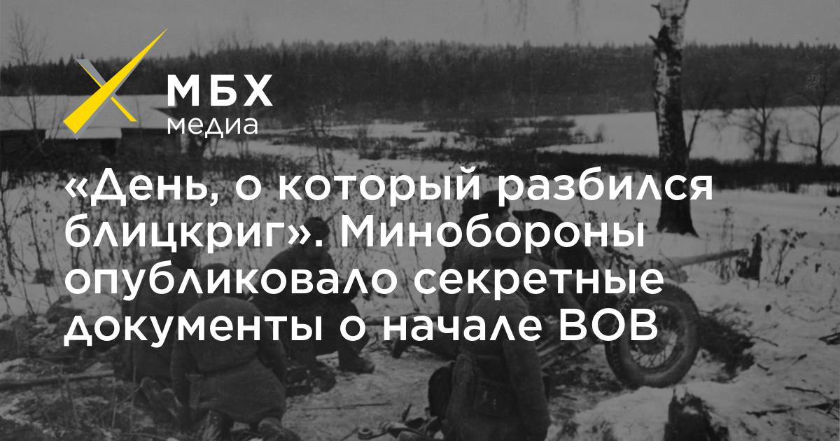 Министерство обороны опубликовало на своем сайте ранее секретные архивные документы о начале Великой Отечественной войны. Раздел сайта с выдержками из документа называется «День, о который разбился блицкриг». Архивы раскрывают подробности первых дней войны, рассказывают о немецких перебежчиках и повествуют как о панике, так и о героизме советских солдат.