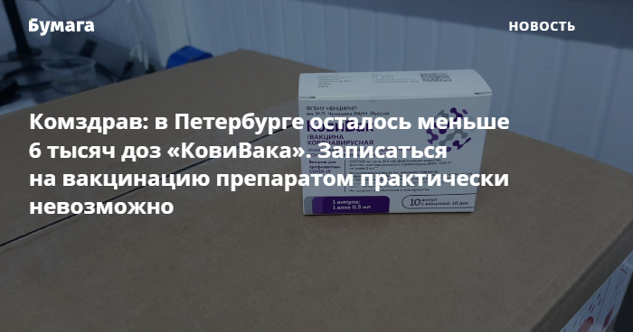 Комздрав: в Петербурге осталось меньше 6 тысяч доз «КовиВака». Записаться на вакцинацию препаратом практически невозможно. Обновлено