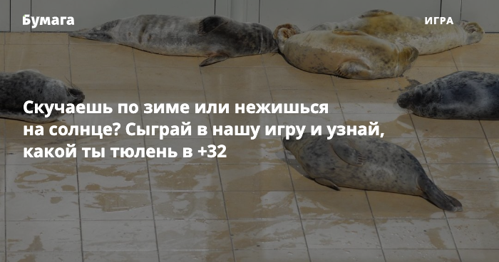 В Петербурге — один температурный рекорд за другим. Сегодня, например, воздух прогрелся до +32 градусов. Что думаете о такой погоде? Не в силах подобрать слов? Пусть это сделают за вас тюлени. Нажмите на кнопку «Узнать» — и подходящая реакция на аномальную жару перед вами.