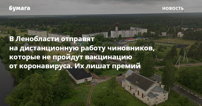 В Ленобласти отправят на дистанционную работу чиновников, которые не пройдут вакцинацию от коронавируса. Их лишат премий