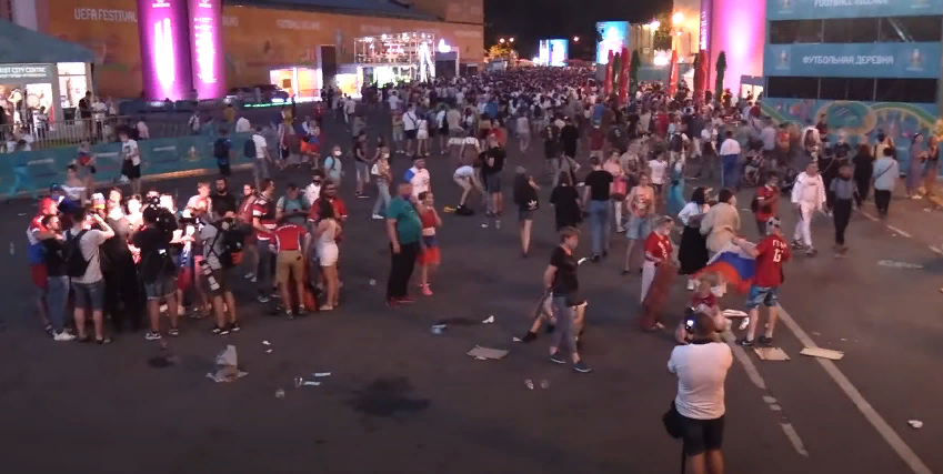 Перед матчем фан-зона на Конюшенной площади была заполнена болельщиками сборной России, а Крестовский остров — финскими фанатами.