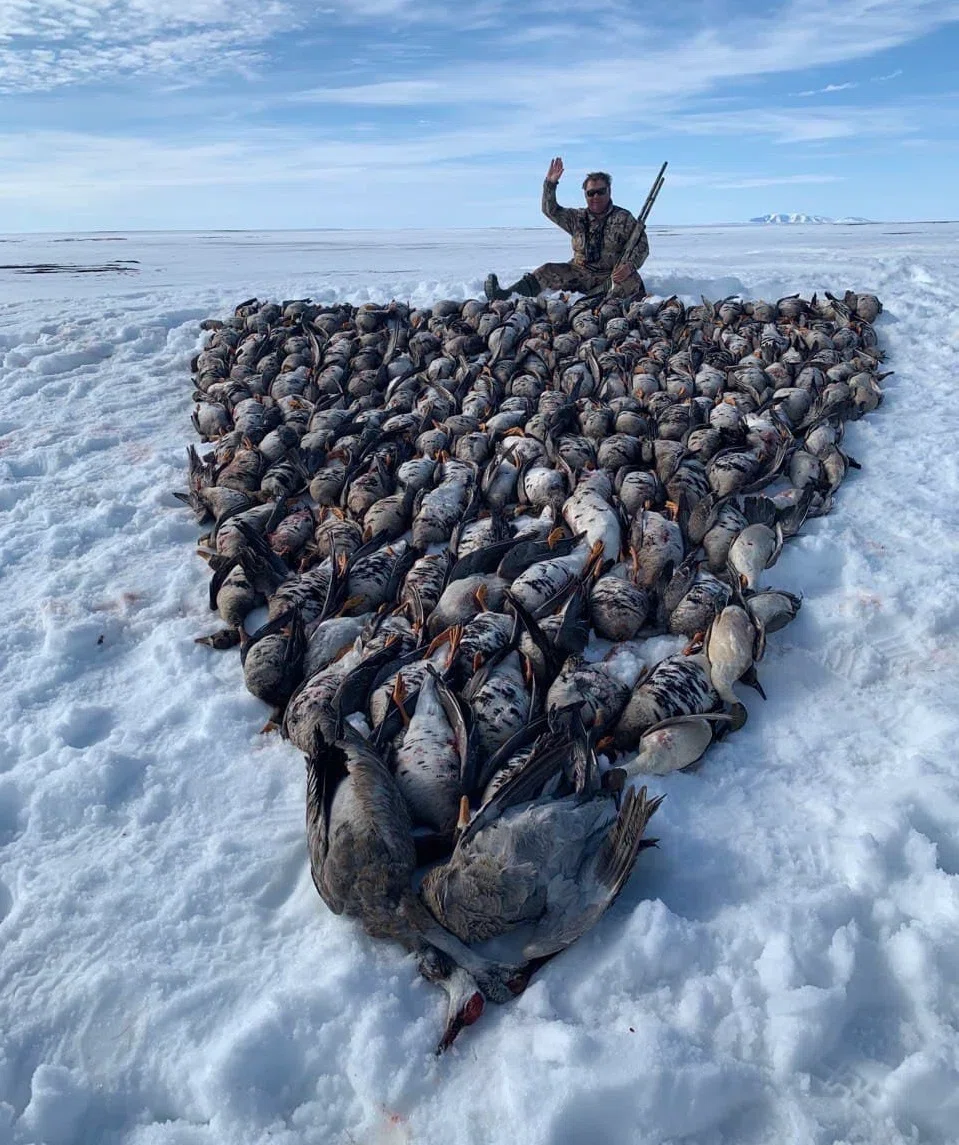 150 WATERFOWL KILLED AND PHOTOGRAPHED AS TROPHIES. Some weeks ago, we obtained a haunting picture of a man with a rifle posing with dozens of slaughtered animals. Dead geese, ducks, and cranes, morbidly spell out the phrase “Chukotka 2021”, suggesting the mass murder happened in the easternmost Russian region bordering Alaska. The sheer size of the pictured hunt meant severe violations of environmental regulations. The photo was already making viral turns on social media. We made a public call to help us to identify the poacher.
