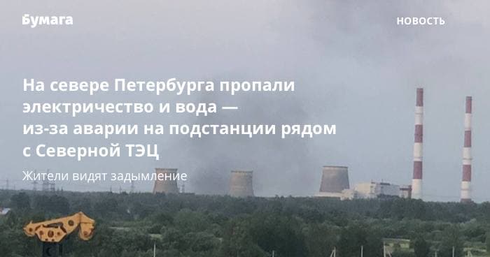 СМИ сообщили об аварии на Северной ТЭЦ. Однако, как пояснили «Бумаге» в «ТГК-1», управляющей ТЭЦ, на самом деле авария произошла на подстанции рядом с ТЭЦ. По информации «Бумаги», речь идет о подстанции «Ручьи», управляемой «Объединенной энергетической компанией».