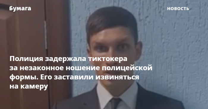 Полиция задержала тиктокера за незаконное ношение полицейской формы. Его заставили извиняться на камеру