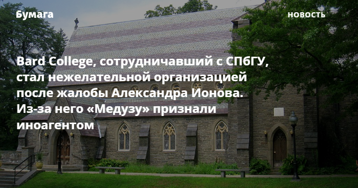 Bard College, сотрудничавший с СПбГУ, стал нежелательной организацией после жалобы Александра Ионова. «Медузу» признали иноагентом по его же обращению