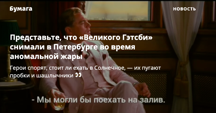 Представьте, что «Великого Гэтсби» снимали в Петербурге во время аномальной жары